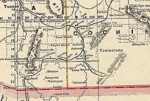 Paul finally became sheriff in April 1881, but it was too late to re-appoint Wyatt Earp as deputy sheriff because on February 1, 1881, the eastern portion of Pima County containing Tombstone had been split off into the new Cochise County, which would need its own sheriff, based in the county's largest city, Tombstone.[55] This position was filled by a political appointment from the governor, and Wyatt and Behan both wanted the job. The Cochise County sheriff's position was worth more than $40,000 a year (equivalent to $1.3 million in 2024) because the office holder was also county assessor and tax collector, and the board of supervisors allowed him to keep ten percent of the amounts paid.[56]: 157