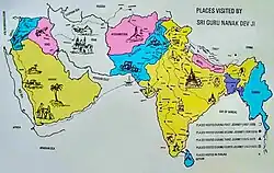 The four Udasis and other locations visited by Guru Nanak