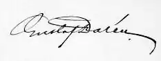 Dalén was born in Stenstorp, a small village in Falköping Municipality, Västra Götaland County.[1] He managed the family farm, which he expanded to include a market garden, a seed merchants and a dairy. In 1892 he invented a milk-fat tester to check milk quality of the milk delivered and went to Stockholm to show his new invention for Gustaf de Laval. de Laval was impressed by the self-taught Dalén and the invention and encouraged him to get a basic technical education. He was admitted to the Chalmers University of Technology where he earned his Master's degree and a Doctorate on leaving in 1896. Dalén was much the same type of inventor as Gustaf de Laval, not afraid of testing "impossible" ideas, but Dalén was much more careful with the company economy. The products should have a solid market place before he introduced a new product.