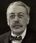 Another early influence was William Morris.[38] In Vaughan Williams's words, "It was now that Holst discovered the feeling of unity with his fellow men which made him afterwards a great teacher. A sense of comradeship rather than political conviction led him, while still a student, to join the Socialist League which met at Kelmscott House in Hammersmith."[35] At Kelmscott House, Morris's home, Holst attended lectures by his host and Bernard Shaw. His own socialism was moderate in character, but he enjoyed the club for its good company and his admiration of Morris as a man.[39] His ideals were influenced by Morris's but had a different emphasis. Morris had written, "I do not want art for a few any more than education for a few, or freedom for a few. I want all persons to be educated according to their capacity, not according to the amount of money which their parents happen to have".[40] Holst said, "'Aristocracy in art'—art is not for all but only for the chosen few—but the only way to find those few is to bring art to everyone—then the artists have a sort of masonic signal by which they recognise each other in the crowd."[n 7] He was invited to conduct the Hammersmith Socialist Choir, teaching them madrigals by Thomas Morley, choruses by Purcell, and works by Mozart, Wagner and himself.[42] One of his choristers was (Emily) Isobel Harrison (1876–1969), a beautiful soprano two years his junior. He fell in love with her; she was at first unimpressed by him, but she came round and they were engaged, though with no immediate prospect of marriage given Holst's tiny income.[42]