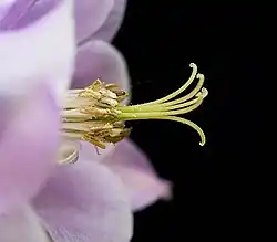 Although many flowers satisfy the above definition of a carpel, there are also flowers that do not have carpels because in these flowers the ovule(s), although enclosed, are borne directly on the floral apex.[12][17] Therefore, the carpel has been redefined as an appendage that encloses ovule(s) and may or may not bear them.[18][19][20] However, the most unobjectionable definition of the carpel is simply that of an appendage that encloses an ovule or ovules.[21] Carpels vary enormously in size from a few micrometres in Balanophora involucrata[22] and in many orchids to 2.5 m (8 ft 2 in) long and 12 cm (4+1⁄2 in) wide in Entada gigas.[23][24]