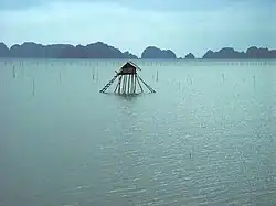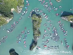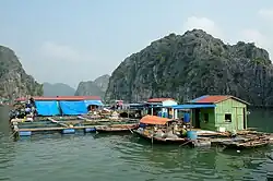 Currently, the expansion of urban areas and population growth, construction of ports and factories, tourism and service activities, household and industrial waste, fishing and aquaculture practices, have not only become threats but have also caused alarming levels of environmental pollution and landscape changes in Ha Long Bay.[29][30] Due to pollution, the once thriving coral reefs in the deep sea of Ha Long Bay are deteriorating.[31] The formerly clear waters of the bay are increasingly becoming turbid and sedimented, prompting scientists to warn of the possibility of Ha Long Bay becoming "swamped."[32] Additionally, as Ha Long Bay is surrounded by thousands of limestone islands, which are mostly good construction materials, they are susceptible to private exploitation, leading to landscape distortion.[33]