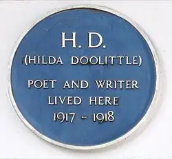 Hilda Doolittle (September 10, 1886 – September 27, 1961) was an American modernist poet, novelist, and memoirist who wrote under the name H.D. throughout her life. Her career began in 1911 after she moved to London and co-founded the avant-garde Imagist group of poets with American expatriate poet and critic Ezra Pound. During this early period, her minimalist free verse poems depicting Classical motifs drew international attention. Eventually distancing herself from the Imagist movement, she experimented with a wider variety of forms, including fiction, memoir, and verse drama. Reflecting the trauma she experienced in London during the Blitz, H.D.'s poetic style from World War II until her death pivoted towards complex long poems on esoteric and pacifist themes.