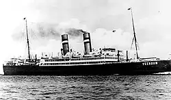 Courageous served with the Home Fleet at the start of World War II with 811 and 822 Squadrons aboard, each squadron equipped with a dozen Fairey Swordfish.[38] In the early days of the war, hunter-killer groups were formed around the fleet's aircraft carriers to find and destroy U-boats. On 31 August 1939 she went to her war station at Portland and embarked the two squadrons of Swordfish. Courageous departed Plymouth on the evening of 3 September 1939 for an anti-submarine patrol in the Western Approaches, escorted by four destroyers.[34] On the evening of 17 September 1939, she was on one such patrol off the coast of Ireland. Two of her four escorting destroyers had been sent to help a merchant ship under attack and all her aircraft had returned from patrols. U-29, commanded by Captain-Lieutenant Otto Schuhart, stalked Courageous for more than two hours. The carrier then turned into the wind to launch her aircraft. This put the ship right across the bow of the submarine, which fired three torpedoes. Two of the torpedoes struck the ship on her port side before any aircraft took off, knocking out all electrical power, and she capsized and sank in 20 minutes with the loss of 519 of her crew, including her captain.[39] The US cargo ship Collingsworth, Ellerman Lines cargo ship Dido, and Dutch ocean liner Veendam rescued survivors. The two escorting destroyers counterattacked U-29 for four hours, but the submarine escaped.[40]
