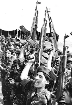 While still a teenager, Assad became increasingly prominent in the party[15] as an organizer and recruiter, head of his school's student-affairs committee from 1949 to 1951 and president of the Union of Syrian Students.[10] During his political activism in school, he met many men who would later serve him when he became president.[15] Thanks to Assad and his comrades, the regional Ba'ath Party branch, through demonstrations and boycotts, succeeded in nationalizing the formerly French-controlled tobacco company "La Compagnie Libano-Syrienne des Tabacs," also known as Rôgie, in 1951. The company had already earned the hatred of the residents of Latakia for its total control over the most profitable and fertile lands, control over prices for its products, and its monopoly.[4]