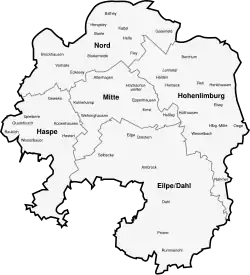 - Hohenlimburg | Elsey | Reh | Henkhausen | Oege | Nahmer | Wesselbach | Holthausen | Herbeck | Halden | Berchum