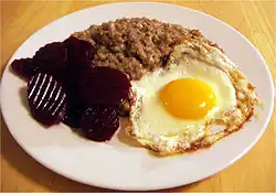 In the north-east of Scotland, from Aberdeen northwards, in addition to the customary neeps and tatties, haggis is commonly served with mince.[26]