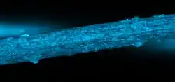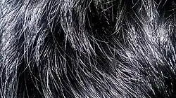 ![]() Scanning electron microscopy image of Merino wool (top) and human hair (bottom) showing keratin scales | |