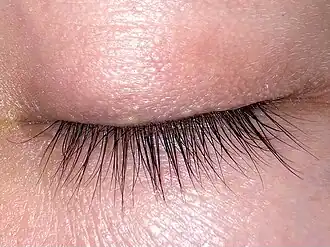 It was previously thought that Caucasian hair grew more quickly than Asian hair and that the growth rate of women's hair was faster than that of men.[15] However, more recent research has shown that the growth rate of hair in men and women does not significantly differ[18] and that the hair of Chinese people grew more quickly than the hair of French Caucasians and West and Central Africans.[19] The quantity of hair hovers in a certain range depends on hair colour.[20][21] An average blonde person has 150,000 hairs, a brown-haired person has 110,000, a black-haired person has 100,000, and a redhead has 90,000.[22] Hair growth stops after a human's death. Visible growth of hair on the dead body happens only because of skin drying out due to water loss.[23][24]