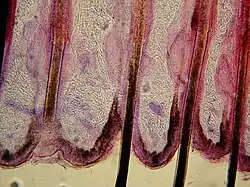 - ^ a b Harkey, M. R. (December 1993). "Anatomy and physiology of hair". Forensic Science International. Hair Analysis as a Diagnostic Tool for Drugs of Abuse Investigation. 63 (1): 9–18. doi:10.1016/0379-0738(93)90255-9. ISSN 0379-0738. PMID 8138238.