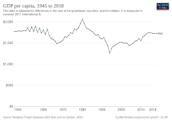 Historically poor and politically unstable, Haiti has faced severe economic and political crises, gang activity displacing over 1.3 million,[29][30] and the collapse of its government. One of the world's least developed countries and with no elected officials remaining, Haiti has been described as a failed state.[31][32]