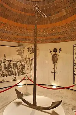 Navigator Christopher Columbus landed in Haiti on 6 December 1492, in an area that he named Môle-Saint-Nicolas,[50] and claimed the island for the Crown of Castile. On 25 December his ship the Santa María ran aground near the present site of Cap-Haïtien. Columbus left 39 men on the island, who founded the settlement of La Navidad.[51] Relations with the native peoples were initially good; however the settlers were later killed by the Taíno.[52]