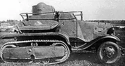 Tractors used to tow artillery and designs with front wheels and tracks at the rear began to appear prior to the outbreak of war, often based on agricultural machines such as the Holt tractor. The basic half-track concept was originally showcased by the British during the war.