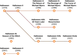 Described by Scott Mendelson of Forbes as the "Choose Your Own Adventure" of horror movie franchises, the franchise is notable for its multiple timelines, continuities, remakes and reboots, which can make it confusing for new viewers, often leading to articles explaining the previous films before each new release.[3][6][7]