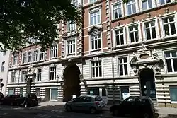 Systematic deportations of Jewish Germans and Gentile Germans of Jewish descent started on 18 October 1941. These were all directed to ghettos in Nazi-occupied Europe or to concentration camps. Most deported persons perished in the Holocaust. By the end of 1942, the Jüdischer Religionsverband in Hamburg was dissolved as an independent legal entity and its remaining assets and staff were assumed by the Reich Association of Jews in Germany (District Northwest). On 10 June 1943, the Reich Security Main Office dissolved the association by a decree.[30] The few remaining employees not somewhat protected by a mixed marriage were deported from Hamburg on 23 June to Theresienstadt, where most of them perished. About 7800 Hamburg Jews were murdered in the Holocaust, of the nearly 17 thousand who had lived in the city before Hitler's rise to power.[31]