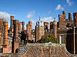 Decorative Tudor brick chimneys at Hampton Court Palace