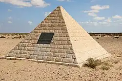 On 30 September 1942, Hauptmann Marseille was leading his Staffel on a Stuka escort mission covering the withdrawal of the group and relieving the outward escort, III./Jagdgeschwader 53 (JG 53), which had been deployed to support JG 27 in Africa. Marseille's flight was vectored onto Allied aircraft in the vicinity but the opponent withdrew and did not take up combat. Marseille vectored the heading and height of the formation to Neumann who directed III./JG 27 to engage. Marseille heard 8./JG 27 leader Werner Schröer claim a Spitfire over the radio at 10:30.[91] While returning to base, his new Messerschmitt Bf 109 G-2/trop's cockpit began to fill with smoke; blinded, he was guided back to German lines by his wingmen, Jost Schlang and Lt Rainer Pöttgen. Upon reaching friendly lines, "Yellow 14" had lost power and was drifting lower and lower. Pöttgen called out after about 10 minutes that they had reached the White Mosque of Sidi Abdel Rahman, and were thus within friendly lines. At this point, Marseille deemed his aircraft no longer flyable and decided to bail out, his last words to his comrades being "I've got to get out now, I can't stand it any longer".[92][93]