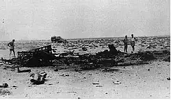 In between the battles with Denis, Marseille downed a Bristol Blenheim on 28 April. Blenheim T2429, from No. 45 Squadron RAF, piloted by Pilot Officer B. C. de G. Allan, crashed killing all five men aboard.[33] Jan Yindrich, a Polish Army soldier, witnessed the attack: "when a Blenheim came roaring down over our heads at about 50 feet, there was a terrific rattle of machine gun fire and at first I thought the Blenheim had made a mistake and was firing at us or choosing an awkward spot to clear his guns. Bullets whistled around, so we dived into the slit trench. A Messerschmitt, hot on the tail of the Blenheim, was responsible for the bullets. The Blenheim roared down the wadi, out to sea, trying to escape from the Messerschmitt, but the Messerschmitt was too close. The Blenheim fell out of the sky and crashed into the sea. The plane disappeared completely not leaving a trace. The Messerschmitt banked and flew inland again."[34]