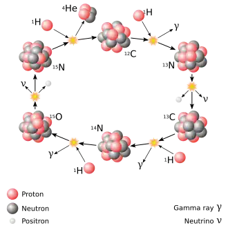 That this did not explain the processes in heavier stars was not overlooked. At the time there were doubts about whether the proton–proton cycle described the processes in the Sun, but more recent measurements of the Sun's core temperature and luminosity show that it does.[68] When he returned to Cornell, Bethe studied the relevant nuclear reactions and reaction cross sections, leading to his discovery of the carbon-nitrogen-oxygen cycle (CNO cycle):[71][72]