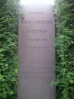 - ^ "Historien om H.C. Andersens gravsted på Assistens Kirkegård i København". H.C. Andersen Information (in Danish). 13 April 2012. Retrieved 18 November 2023.
