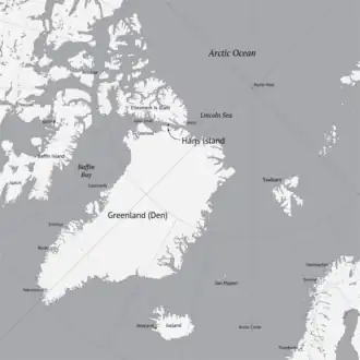 ![]() Location of Hans Island, between Greenland and Ellesmere Island | |