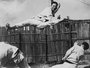 Kim Moo-hong (김무홍; alternately rendered as Kim Moo-woong or Kim Mu-hyun)[2] was a student from the Choi and Seo's Daehan Hapki Yukwonsool Dojang, who later taught at Seo's main dojang in Taegu. Seo, who promoted Kim to 4th degree, credits Kim with the development of many kicks which are still used in hapkido today. Kim apparentally took the concepts from very basic kicks he had learned from Choi and went to a temple to work on developing them to a much greater degree. Later, in 1961, Kim travelled to Seoul and while staying at Ji Han-jae's Sung Moo Kwan dojang they finalized the kicking curriculum.[1]