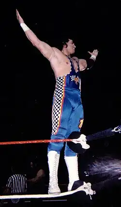 Holly returned to the WWF on January 11, 1994.[4] His initial gimmick was that of a NASCAR driver turned wrestler called Thurman "Sparky" Plugg,[4][3] by late summer 1994, Holly changed his name to Bob "Spark Plugg" Holly, according to Holly, he went to Vince McMahon and asked him to change his name because he didn't like the "Thurman" name and that his friends and family were teasing him over the name but wanted to keep the NASCAR gimmick and McMahon agreed.[11][12] He competed in the 1994 Royal Rumble match, lasting over 21 minutes.