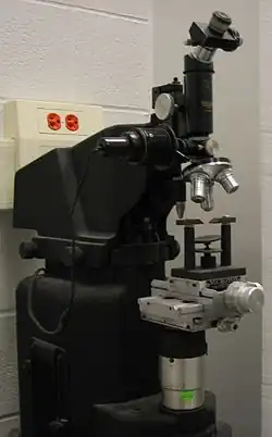 Scratch hardness is the measure of how resistant a sample is to fracture or permanent plastic deformation due to friction from a sharp object.[1] The principle is that an object made of a harder material will scratch an object made of a softer material. When testing coatings, scratch hardness refers to the force necessary to cut through the film to the substrate. The most common test is Mohs scale, which is used in mineralogy. One tool to make this measurement is the sclerometer.