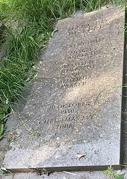 Pinter was content in his second marriage and enjoyed family life with his six adult stepchildren and 17 step-grandchildren.[68] Even after battling cancer for several years, he considered himself "a very lucky man in every respect".[69] Sarah Lyall notes in her 2007 interview with Pinter in The New York Times that his "latest work, a slim pamphlet called 'Six Poems for A.', comprises poems written over 32 years, with "A" of course being Lady Antonia. The first of the poems was written in Paris, where she and Mr. Pinter traveled soon after they met. More than three decades later the two are rarely apart, and Mr. Pinter turns soft, even cozy, when he talks about his wife."[24] In that interview Pinter "acknowledged that his plays—full of infidelity, cruelty, inhumanity, the lot—seem at odds with his domestic contentment. 'How can you write a happy play?' he said. 'Drama is about conflict and degrees of perturbation, disarray. I've never been able to write a happy play, but I've been able to enjoy a happy life.'"[24] After his death, Fraser told The Guardian: "He was a great man, and it was a privilege to live with him for over 33 years. He will never be forgotten."[70][71]