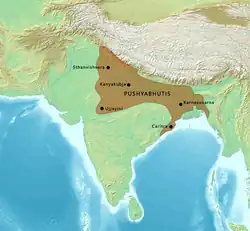 Empire ruled by Harsha, 7th century CE India[7]