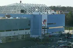 To address the significant increase in air traffic that outstripped the capacity of the 1961 terminal, and after years of planning and design, construction began on the present midfield terminal complex in 1977 under the administration of Mayor Maynard Jackson. It was billed as the largest construction project in the South, costing $500 million. The complex was designed by Stevens & Wilkinson, Smith Hinchman & Grylls, and Minority Airport Architects & Planners.[30] The new complex, initially consisting of the North and South Terminals, Concourses A through D, and the northern half of the present-day Concourse T (which served as the International Terminal), opened on September 21, 1980, on time and under budget.[31] It was designed to accommodate up to 55 million passengers per year and covered 2.5 million square feet (230,000 m2). In December 1984, a 9,000-foot (2,700 m) fourth parallel runway was completed, and another runway was extended to 11,889 feet (3,624 m) the following year.[22] To accommodate increases in international air traffic, a southern extension of Concourse T opened in 1987, and Concourse E opened in 1994 in advance of Atlanta hosting the 1996 Summer Olympics, with Concourse T subsequently being converted to use by domestic flights. MARTA rail service was extended to Hartsfield with the opening of the Airport station in 1988 (the station itself was constructed in 1979-80 as part of the terminal).