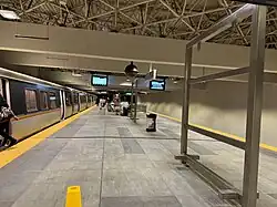 Hartsfield–Jackson Atlanta International Airport has two terminals and seven concourses with a total of 193 gates.[5] The Domestic Terminal is located on the west side of Hartsfield–Jackson and the Maynard H. Jackson Jr. International Terminal is on the east side of the airport. The Domestic Terminal has entrances on both sides, which are known as Domestic Terminal North and Domestic Terminal South. Concourse T is directly connected to the Domestic Terminal and Concourse F is directly connected to the International Terminal. The remaining five concourses (Concourses A-E) are located between the two terminals and are parallel to one another.[65] The terminals and concourses are connected airside by the Transportation Mall, an underground pedestrian tunnel with a series of moving walkways and The Plane Train, a 24/7 underground automated people mover.[66] A second underground walkway connecting the north sides of Concourses B and C once existed for Eastern Air Lines.[67] This underground walkway was closed in the late 2000s and is now used for Hartsfield–Jackson's baggage system.[68]