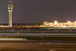 Along with the fifth runway, a new control tower was built to see the entire runway length. The new control tower is the tallest in the United States, over 398 feet (121 m) tall. The old control tower, at 231 ft, was demolished in 2006.[37]