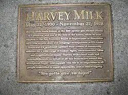 - ^ Delgado, Ray (June 6, 2006). Museum opens downtown with look at 'Saint Harvey'; exhibitions explore history of slain supervisor, rainbow flag Archived April 2, 2015, at the Wayback Machine, San Francisco Chronicle. Retrieved on July 9. 2011.
