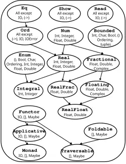 Foldable and Traversable (with corresponding changes to the type signatures of some functions), and of Applicative as intermediate between Functor and Monad, are deviations from the Haskell 2010 standard.Haskell 98