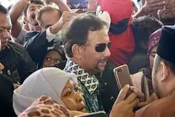 The 50th anniversary of his royal ascension was celebrated on 5 October 2017, he declared during his speech that it was the "most historic day" for both Bruneians and himself.[79] In addition, the Sultan stated that he and his people needed to exercise "reciprocal responsibility".[80] According to press releases from their respective countries, Prime Ministers Lee Hsien Loong of Singapore, Hun Sen of Cambodia, Najib Razak of Malaysia, State Counsellor Aung San Suu Kyi of Myanmar, President Rodrigo Duterte of the Philippines and Joko Widodo of Indonesia were scheduled to attend the festivities.[3][81][82] Among the many royal guests in attendance were Prince Edward and his wife, Sophie.[83]