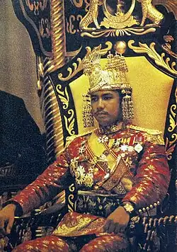Among the foreign dignitaries who attended the ceremony were the prime minister of Singapore, Lee Kuan Yew; the Malaysian prime minister, Tunku Abdul Rahman; and the British High Commissioner to Brunei, Arthur Adair, who represented Queen Elizabeth II.[35] To commemorate the event, the Coronation Medal[36] and stamps were established.[37]
