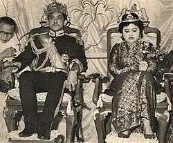 At the age of fifteen, he was crowned as Yang Maha Mulia Seri Paduka Duli Pengiran Muda Mahkota (His Royal Highness the Crown Prince) on 14 July 1961.[4][5][6] Notably, the 2nd Gurkha Rifles were dispatched to Brunei in December 1962, the month the Brunei revolt began. Lieutenant Colonel Digby Willoughby and a small Royal Gurkha Rifles squad helped to rescue his father and him from their palace, and his father was eternally grateful for Willoughby's actions on that day.[14]