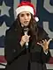 Santa hat | A floppy, pointed, red stocking cap, trimmed in white fur, traditionally associated with Christmas |