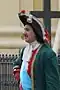 Tricorne | A soft hat with a low crown and broad brim, pinned up on either side of the head and at the back, producing a triangular shape. Worn by Europeans in the 18th century. Larger, taller, and heavily ornamented brims were present in France and the Papal States. |