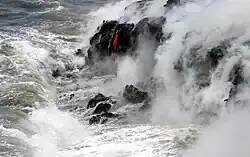 The last volcanic eruption outside Hawaiʻi Island occurred at Haleakalā on Maui before the late 18th century, possibly hundreds of years earlier.[52] In 1790, Kīlauea exploded; it is the deadliest eruption known to have occurred in the modern era in what is now the United States.[53] Up to 5,405 warriors and their families marching on Kīlauea were killed by the eruption.[54] Volcanic activity and subsequent erosion have created impressive geological features. Hawaii Island has the second-highest point among the world's islands.[55]
