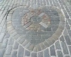 The club took its name from historic county Midlothian, dating from the Middle Ages, as well as the Heart of Midlothian mosaic on the Royal Mile, which marks the historic entrance to the Old Tolbooth jail,[3] which was demolished in 1817 but was kept fresh in the mind by Walter Scott's novel The Heart of Midlothian.[12][13]
