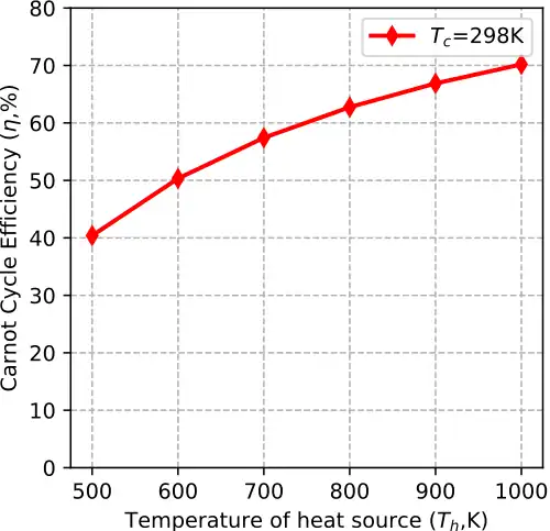 Figure 2: Carnot cycle efficiency with changing heat addition temperature.