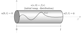 The following solution technique for the heat equation was proposed by Joseph Fourier in his treatise Théorie analytique de la chaleur, published in 1822. Consider the heat equation for one space variable. This could be used to model heat conduction in a rod. The equation is