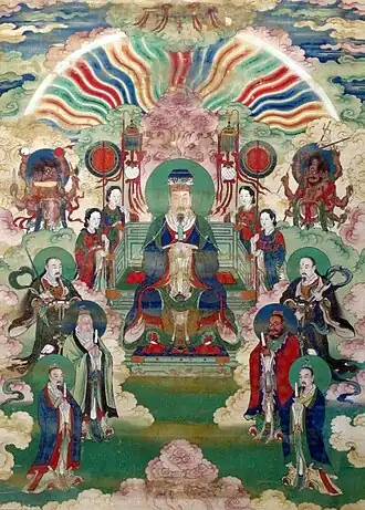 Chinese painting of the Jade Emperor and the Heavenly Kings of Taoist cosmology.