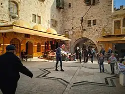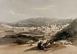 A report from the consul of the French Consulate in Jerusalem in 1886 suggests that glass-making remained an important source of income for Hebron, with four factories earning 60,000 francs yearly.[127] While the economy of other cities in Palestine was based on solely on trade, the economy of Hebron was more diverse, including agriculture and livestock herding, along with glassware manufacturing and processing of hides. This was because the most fertile lands were situated within the city limits.[128] Even so, Hebron had an image of being unproductive and an "asylum for the poor and the spiritual".[129] While the wealthy merchants of Nablus built fine mansions, housing in Hebron consisted of semi-peasant dwellings.[128]