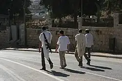 Immediately after the 1967 war, mayor al-Ja'bari had unsuccessfully promoted the creation of an autonomous Palestinian entity in the West Bank, and by 1972, he was advocating for a confederal arrangement with Jordan instead. al-Ja'bari nevertheless consistently fostered a conciliatory policy towards Israel.[176] He was ousted by Fahad Qawasimi in the 1976 mayoral election, which marked a shift in support towards pro-PLO nationalist leaders.[177] Supporters of Jewish settlement within Hebron see their program as the reclamation of an important heritage dating back to Biblical times, which was dispersed or, it is argued, stolen by Arabs after the massacre of 1929.[178][179] The purpose of settlement is to return to the 'land of our forefathers',[180] and the Hebron model of reclaiming sacred sites in Palestinian territories has pioneered a pattern for settlers in Bethlehem and Nablus.[181] Many reports, foreign and Israeli, are sharply critical of the behavior of Hebronite settlers.[182][183]