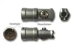 The reliable functioning of roller-delayed blowback mechanisms is limited by specific ammunition and arm parameters like bullet weight, propellant charge, barrel length and amount of wear. For obtaining a proper and safe functioning parameters bandwidth Heckler & Koch offer a variety of locking pieces with different mass and shoulder angles. The angles are critical and determine the unlock timing and pressure curve progression as the locking pieces act in unison with the bolt head carrier.[12][13]
