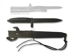 Standard accessories supplied with the rifle include: a detachable bipod (not included with rifles that have a perforated plastic handguard), sling, cleaning kit and a speed-loading device. Several types of bayonet are available for the G3, but with few exceptions they require an adapter to be inserted into the end of the cocking tube. The most common type features a 63⁄4 inch spear-point blade nearly identical with the M7 bayonet, but with a different grip because of its mounting above the barrel. The weapon can also mount a 40 mm HK79 under-barrel grenade launcher, blank firing adapter, a straight blowback bolt (called a "PT" bolt, lacks rollers) used for firing 7.62×51mm ammunition with plastic bullets, a conversion kit used for training with .22 Long Rifle ammunition and a sound suppressor (that uses standard ammunition).