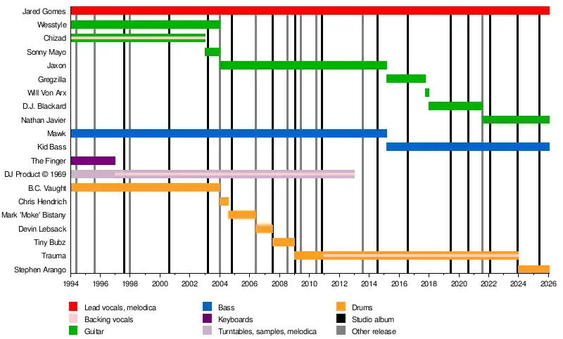 The band's influences include Beastie Boys,[30] Black Sabbath,[18] Bob Marley,[68] Led Zeppelin,[18] Nine Inch Nails,[30] Notorious B.I.G.[69] and Rage Against the Machine.[18]